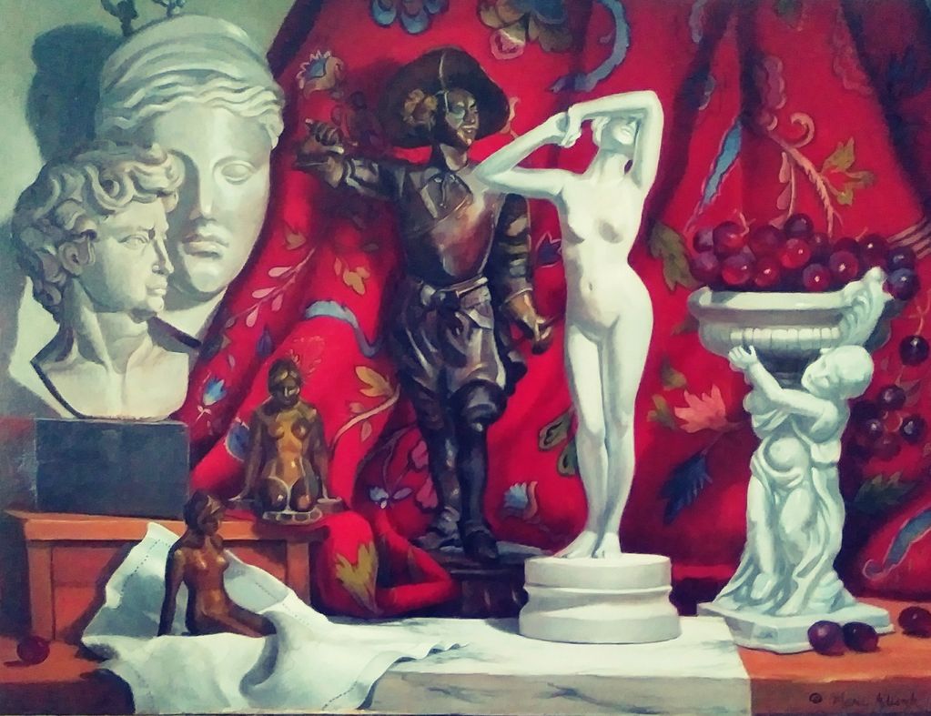The statues seen in the still life were chosen from among the props I used at my studio in Periwinkle Place in Havre de Grace, MD.