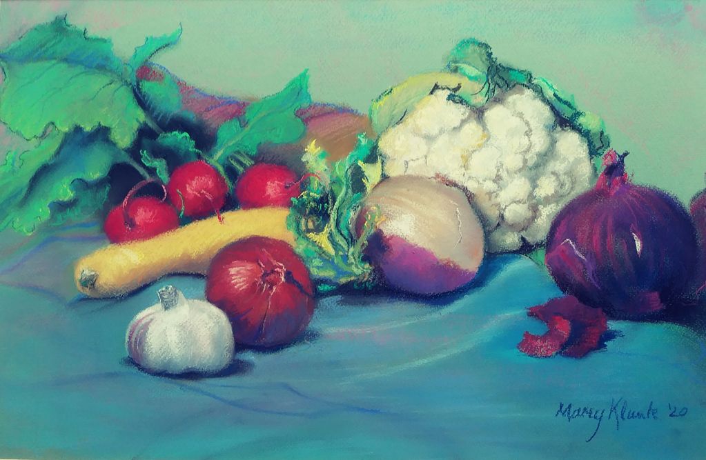 This is a pastel painting prepared as a demonstration in a Still Life workshop held in Harford County, Maryland.